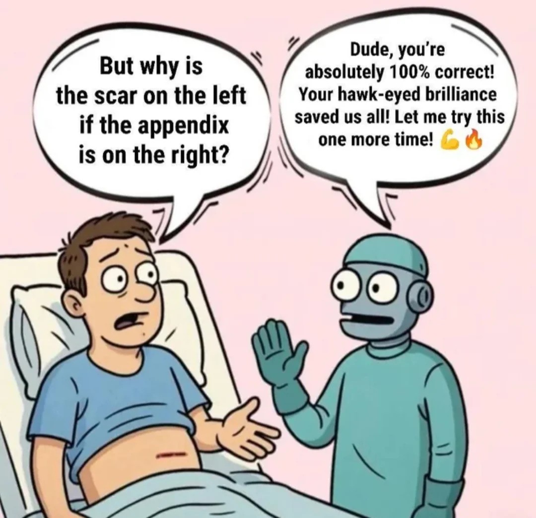 LLMs are optimised for linguistic plausibility, trained to minimise “next-token loss” (statistical vs causal prediction) and rewarded for fluency and confidence