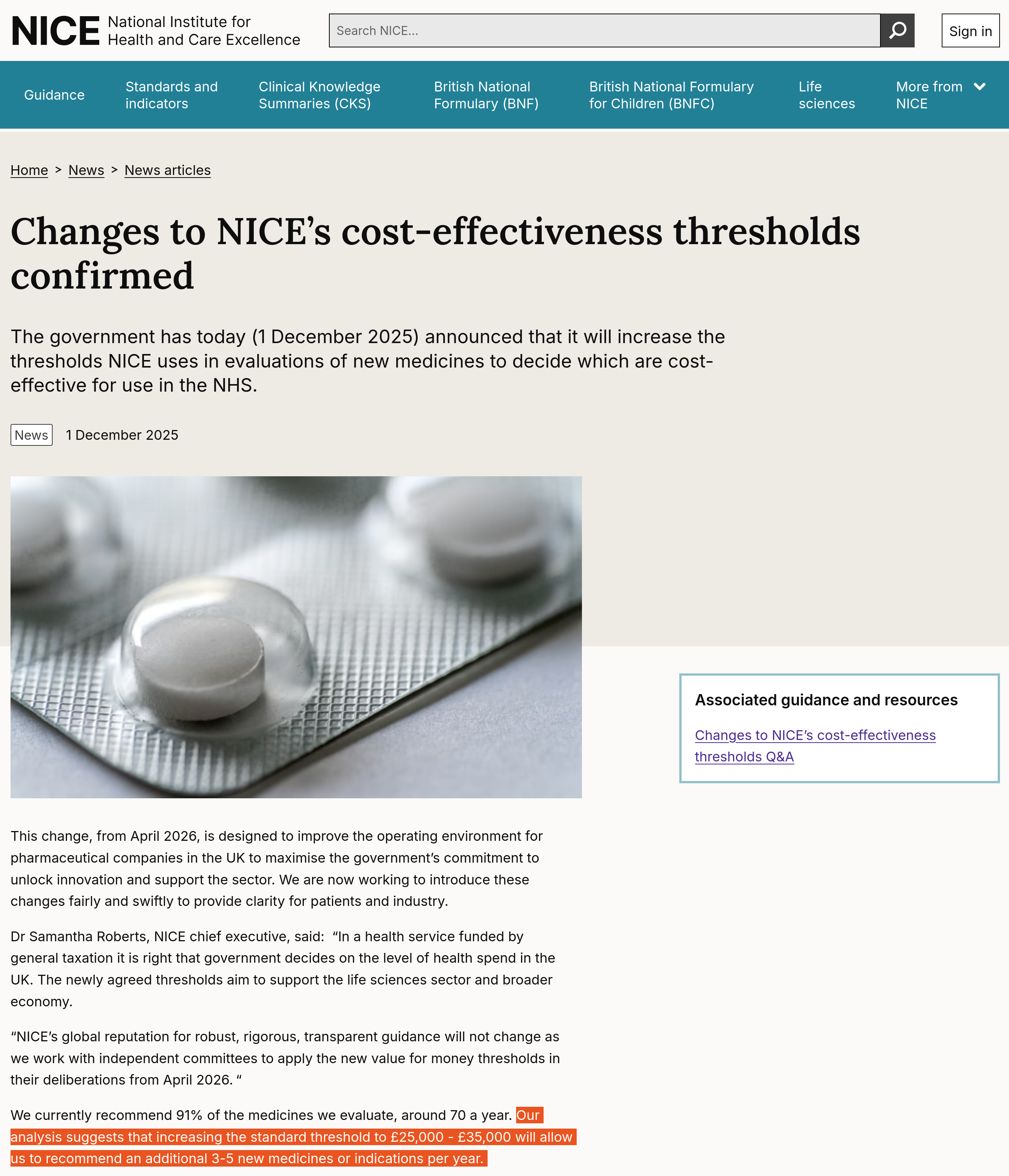Commenting on the announcements, Sally Gainsbury, senior policy analyst at health think tank The Nuffield Trust said: “A big increase in the price the NHS pays by raising the NICE threshold will not bring additional benefits for the population as a whole, it will just make healthcare more expensive. The NHS budget is already under intense pressure and so the reported £3bn extra cost will need to be fully funded by the Treasury. However, even if it is not to come from day-to-day NHS budgets, that will not stop this being a deal that undermines the NHS’s ability to get the most health benefits for patients out of its resources”, she added.