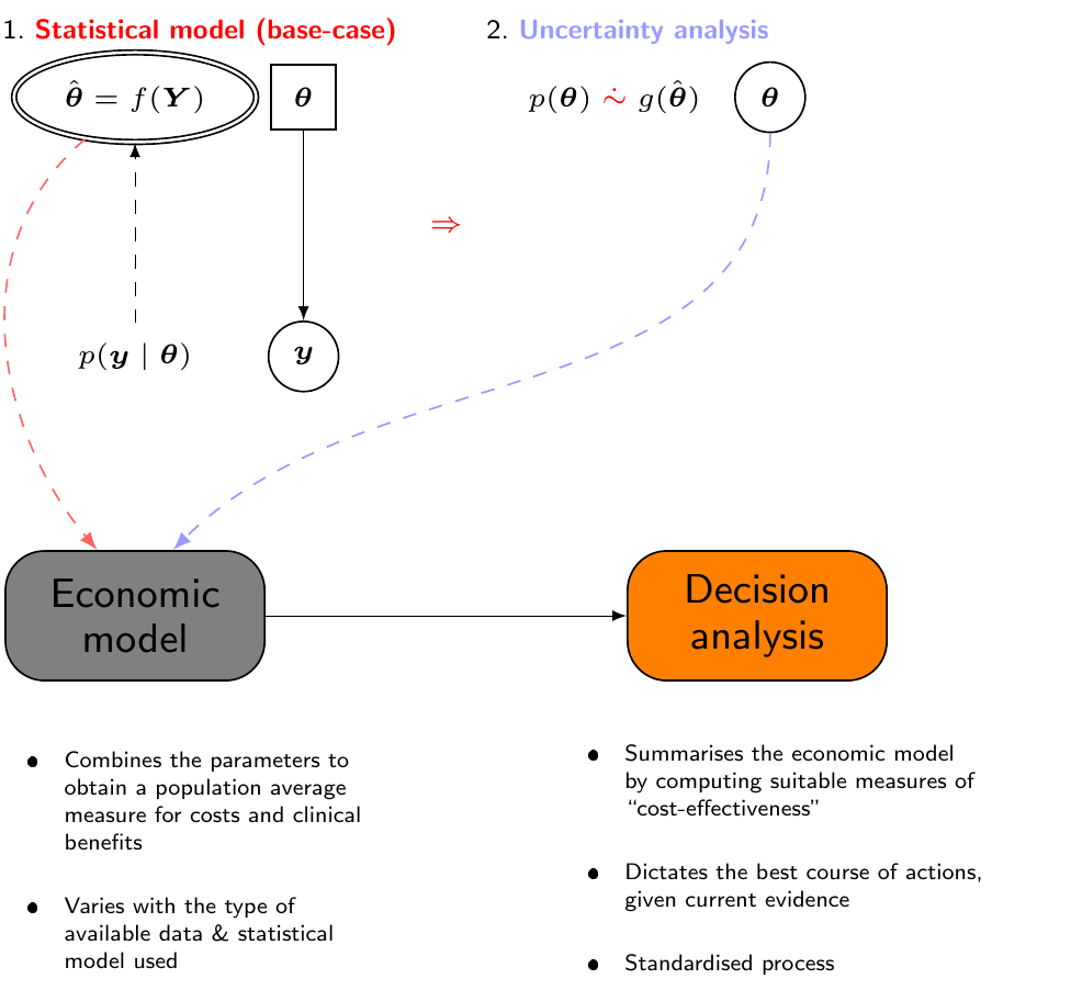 This does not fully account for the inherent uncertainty in the estimates for the model parameters, which in turn determine the economic summaries and therefore have a potentially substantial impact on the uncertainty in the decision-making process