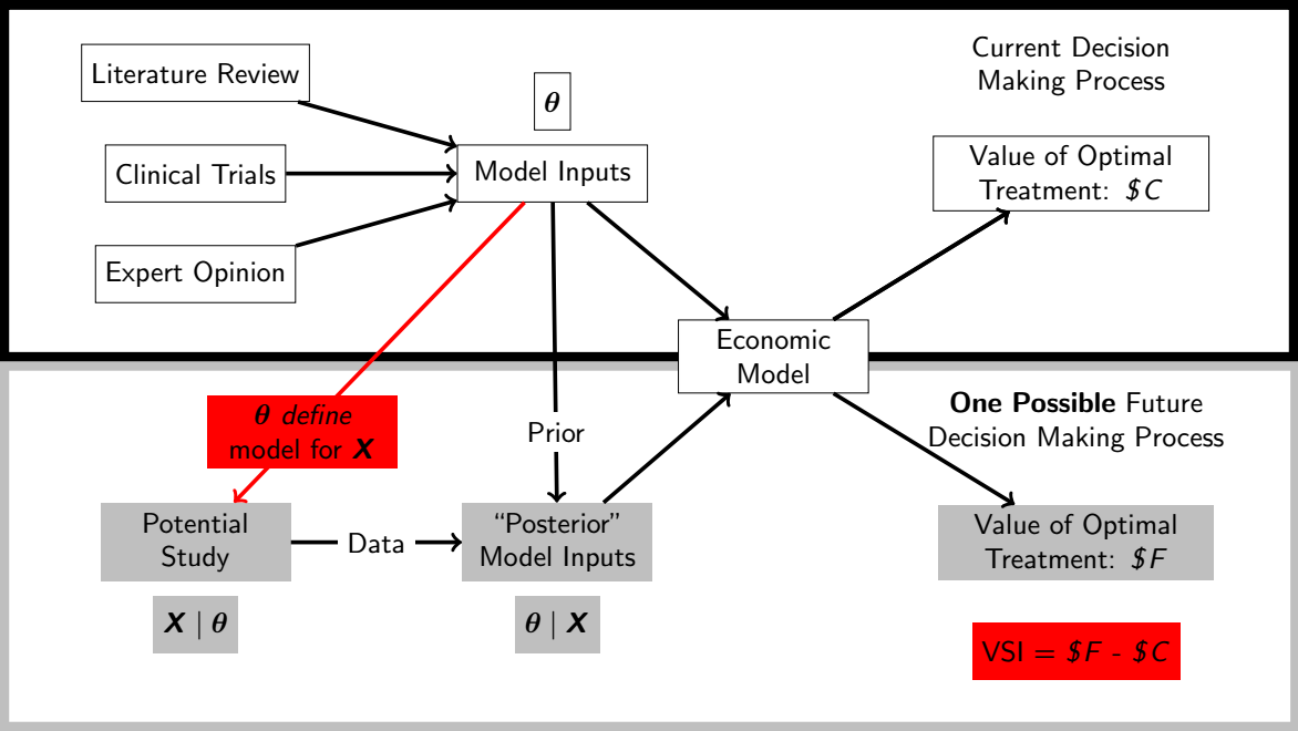 - This allows us to fully characterise and propagate the uncertainty in the fundamental economic parameters to the rest of the decision analysis with essentially no extra computational cost