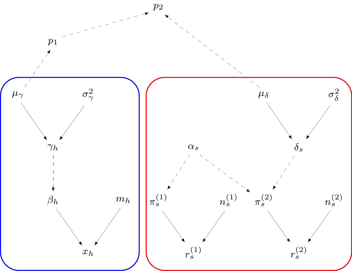 - \(\gamma_{ci}=\nu_c/\phi_{ci}\) is the rate of the conditional distribution for the costs given the benefits